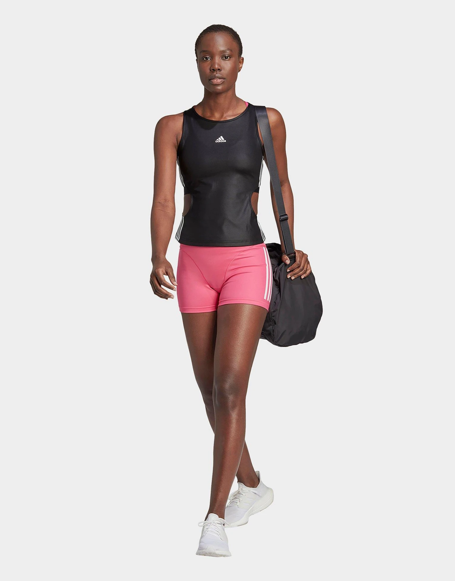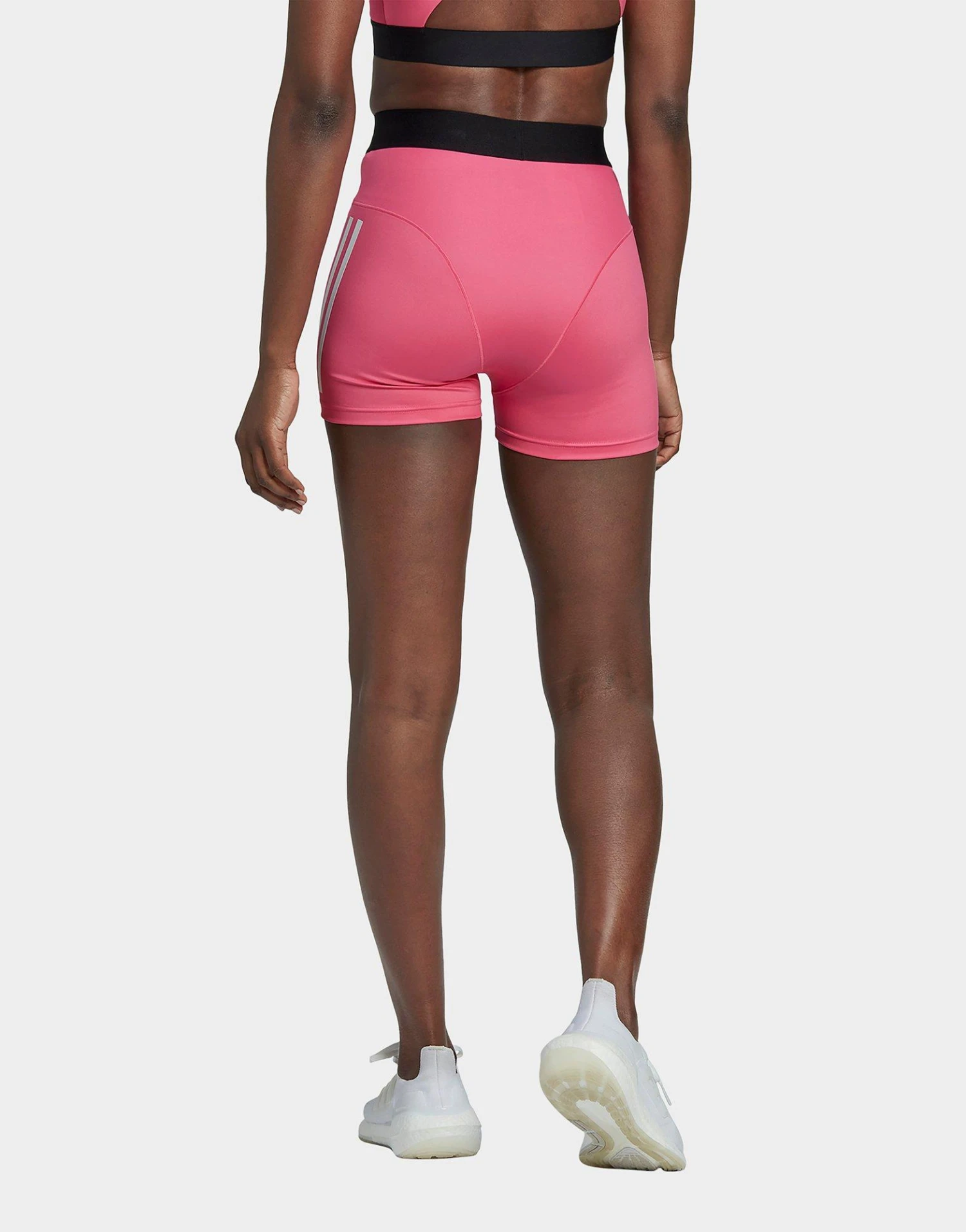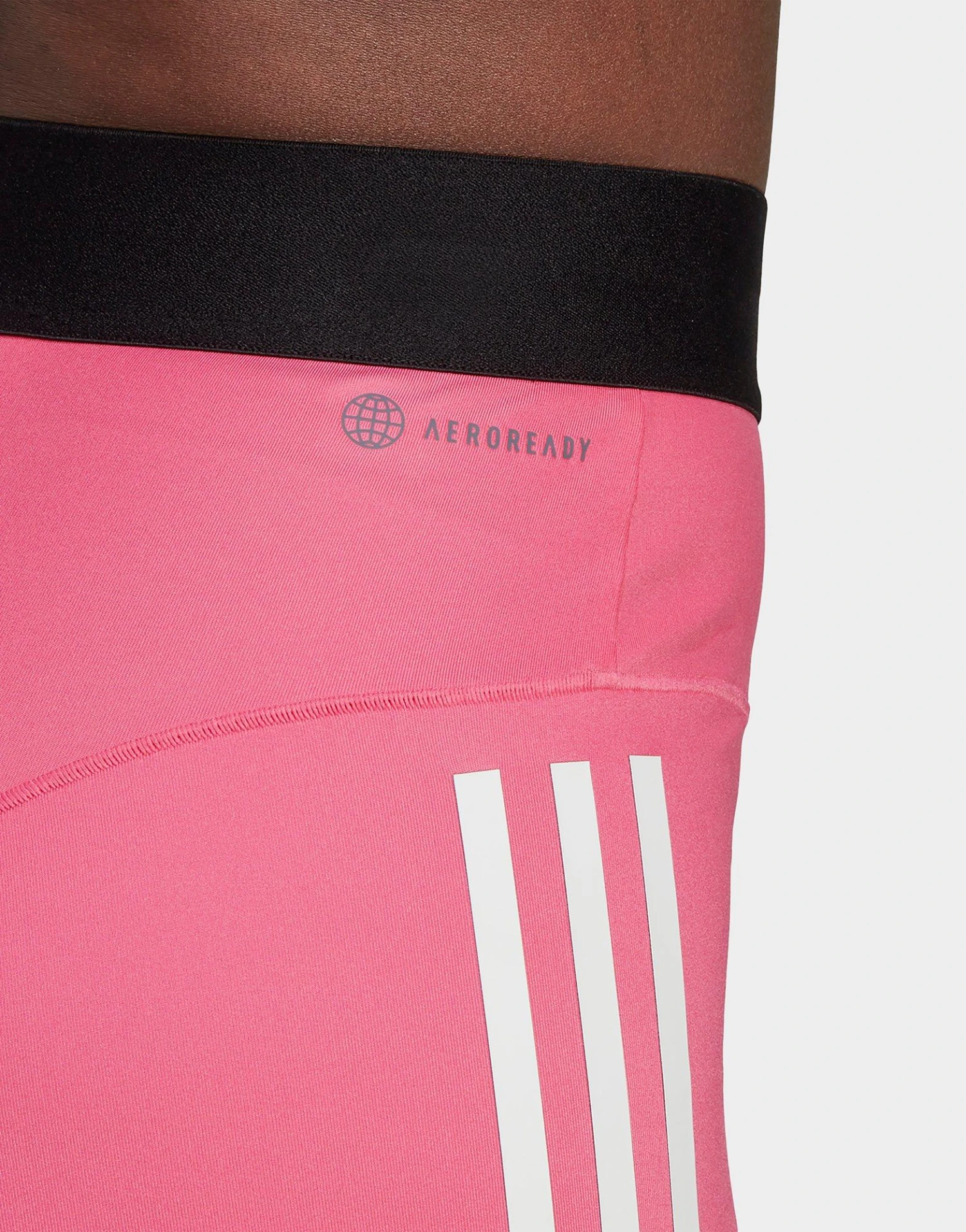 Je wilt niet dat je kleding je focus in de weg zit. Train zonder afleiding in deze korte adidas hyperglam legging. Als een korte versie van een fietsshort zit-ie goed strak om je te ondersteunen en met je mee te bewegen. De licht glanzende stof voelt gestroomlijnd en glad aan. De hoge tailleband is gemaakt van onbedekt elastiek, waardoor hij meerekt en op z’n plek blijft, hoe je ook beweegt.