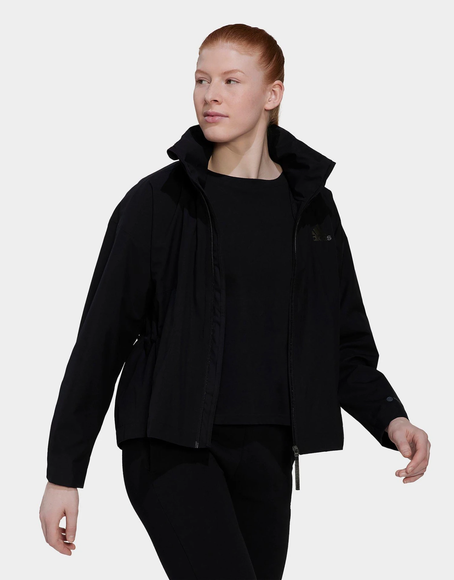 Functie en stijl komen samen in dit veelzijdige adidas jack. De gesealde naden, de dubbellaagse constructie en RAIN.RDY houden vocht buiten zodat je droog en comfortabel blijft als het weer omslaat. De opbergbare capuchon scoort punten als het gaat om gemak. En wat voor weer het ook is, je kunt sowieso de drukknopen in de boorden vastmaken en de taille strak aansnoeren voor een moderne look. Dit product, gemaakt met een reeks gerecyclede materialen en ten minste 60% aan hergebruikte grondstoffen, vertegenwoordigt slechts één van onze oplossingen om te helpen een einde te maken aan plastic afval.